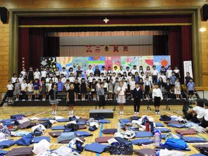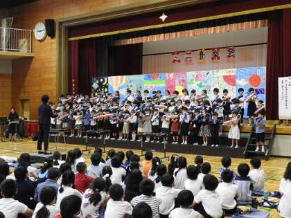 10月5日のミニ音楽会では、季節外れの暑さにもかかわらず795名の保護者・地域の皆様にご来校いただきました。子供たちは、音楽授業を中心に学習した歌や合奏を気持ちを込めて演奏しました。各学年とも練習の成果を活かして、素晴らしい音色を体育館に響かせました。心癒される文化の秋となりました。
