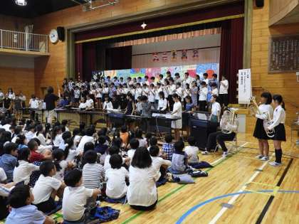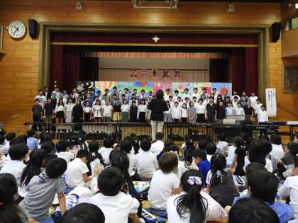 10月5日のミニ音楽会では、季節外れの暑さにもかかわらず795名の保護者・地域の皆様にご来校いただきました。子供たちは、音楽授業を中心に学習した歌や合奏を気持ちを込めて演奏しました。各学年とも練習の成果を活かして、素晴らしい音色を体育館に響かせました。心癒される文化の秋となりました。
