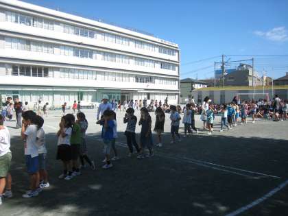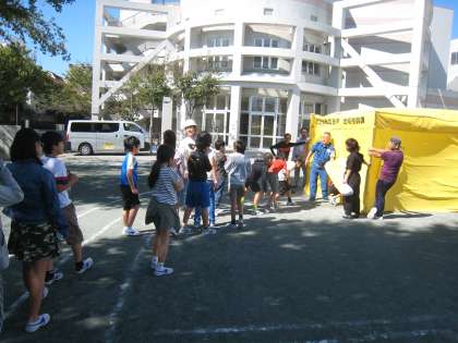 10月9日、避難訓練を実施しました。今回は世田谷区役所地域振興課の職員から火災の際の注意点を話していただき、全校児童が煙体験訓練を行いました。