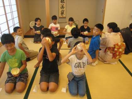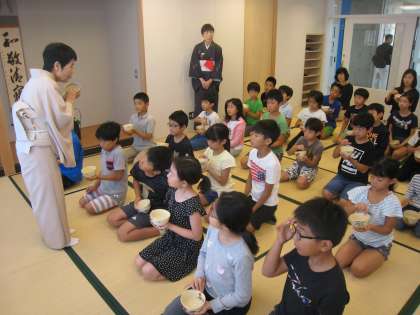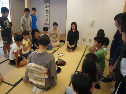 学校公開2日目、10月10日、4年生対象に茶道教室を行いました。お茶をたて、味わうという茶道の風習は、日常生活とは一味違う日本の文化です。茶道の先生方にお世話になり、児童は興味津々な表情で活動していました。