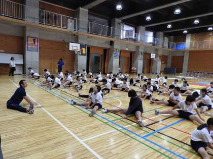 10月28日、3校時、6年生対象に体操競技オリンピアンの鹿島丈博先生によるマット運動体験教室を実施しました。マット運動の基本動作やユニークな体の使い方などを学びました。1時間だけの体験教室でしたが、6年生にとって有意義で貴重な時間となりました。