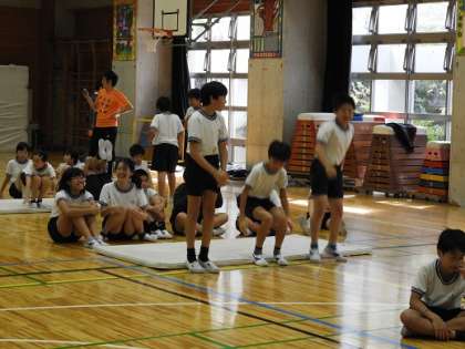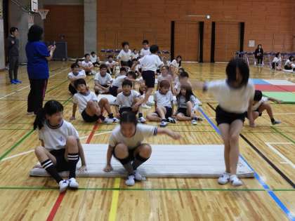 10月28日、3校時、6年生対象に体操競技オリンピアンの鹿島丈博先生によるマット運動体験教室を実施しました。マット運動の基本動作やユニークな体の使い方などを学びました。1時間だけの体験教室でしたが、6年生にとって有意義で貴重な時間となりました。