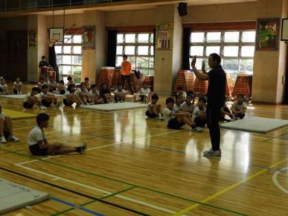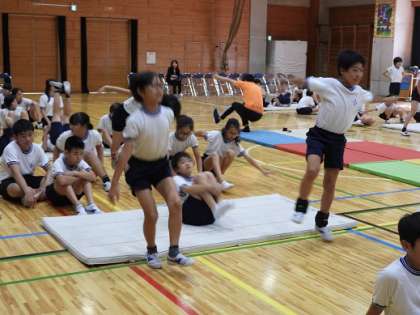 10月28日、3校時、6年生対象に体操競技オリンピアンの鹿島丈博先生によるマット運動体験教室を実施しました。マット運動の基本動作やユニークな体の使い方などを学びました。1時間だけの体験教室でしたが、6年生にとって有意義で貴重な時間となりました。