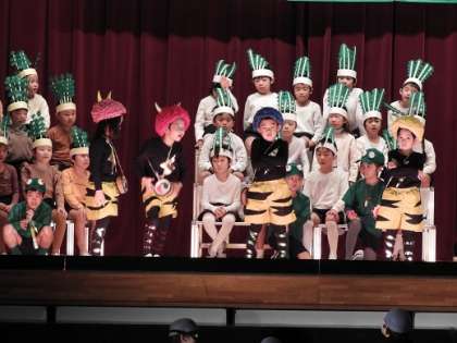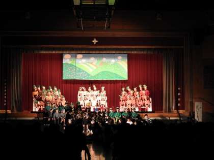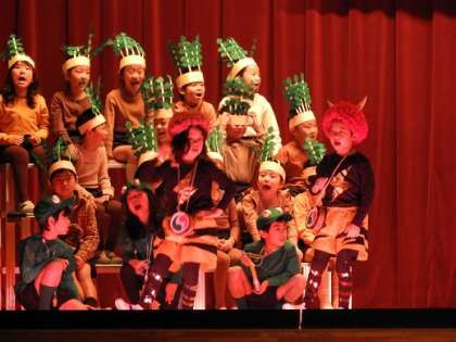 学芸会で1年生は劇「はたけのしたはおおさわぎ」を演じました。2週間延期のブランクを感じさせず元気よく大きな声を出して自分の役を演じることができました。