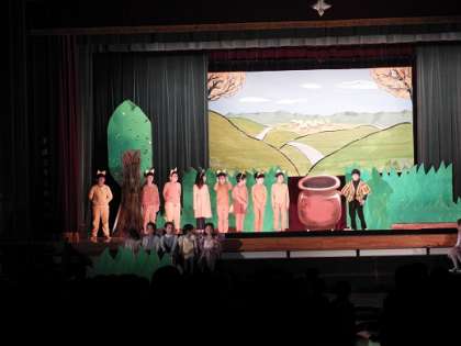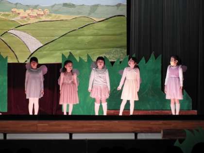 学芸会で2年生は劇「やんすけとやんすけとやんすけと」を演じました。2週間延期のブランクを感じさせず児童は登場人物のイメージをふくらませ、一人一人が個性豊かに演じることができました。