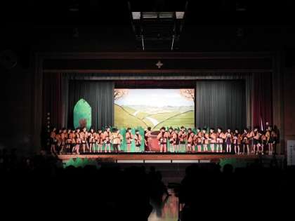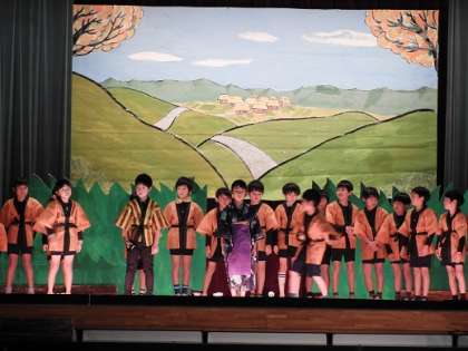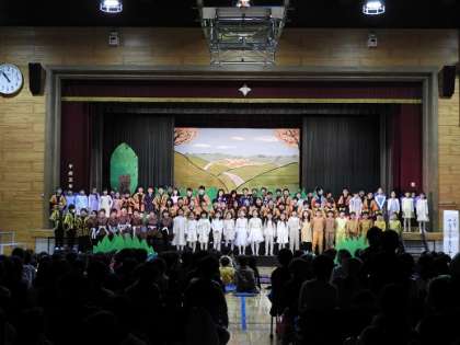 学芸会で2年生は劇「やんすけとやんすけとやんすけと」を演じました。2週間延期のブランクを感じさせず児童は登場人物のイメージをふくらませ、一人一人が個性豊かに演じることができました。