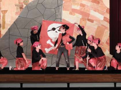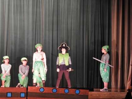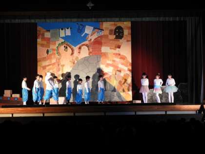 学芸会で4年生は劇「七つの海の船乗りラシード」を演じました。2週間延期のブランクを感じさせず、児童はみんなで協力しながら練習を重ねた成果を発表することができました。バグダットの町をイメージした背景画、小物、衣装なども素敵でした。