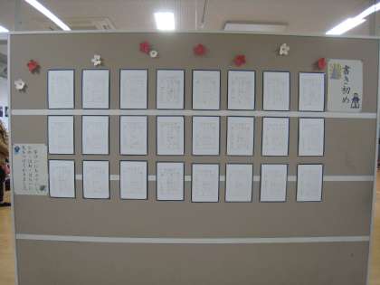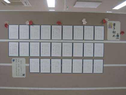 1/11(土)〜1/17(金)書き初め展を開催しています。1・2年生は硬筆、3〜6年生は毛筆による書道作品が各学年の廊下に展示されています。児童が新年の思いを込めて書いた力作が揃っていますので、ご来校の際には是非ご覧ください。