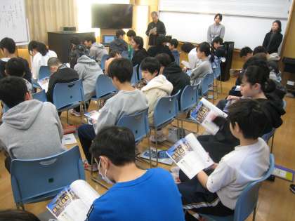 1月29日、太子堂中学校にて大志の学び舎合同研修会を行いました。本日はたまたま中学校では「カジュアルデー(私服登校)」の日でした。1年生(2クラス合同)を対象にした「特別の教科 道徳」、主題「伝統を守る『奈良筆に生きる』」を教材にした研究授業を1年担任の先生が行いました。その後、小中学校の教員が5グループに分かれて研究協議を行い、それぞれが発表し、全体協議を行いました。主体的・対話的で深い学びについての意見交換を通して学んだことを、今後の授業改善に活かしたいと思います。