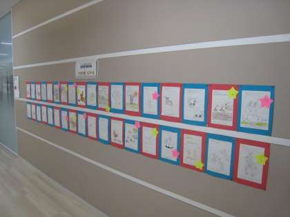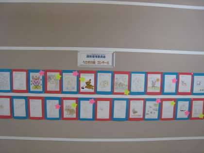 飼育環境委員会で企画した「うさぎの絵コンクール」、全校児童から応募されたイラストが2階生活科室前の壁面に展示されています。太子堂小学校の新たな仲間をモデルに描かれた作品は、力作からユニークなものまで多岐に渡ります。ご来校の際は、是非ご覧になってください。