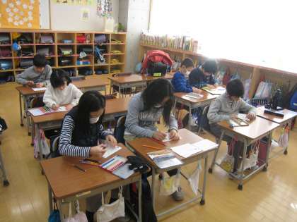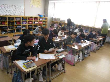 本校の教育活動のひとつ「たてわり班活動」活動のねらいは、『異年齢の子供との交流を通して、思いやりの心や社会性を培う』です。2月7日、6年生のためのカレンダー作りを5年生がリーダーとなって行いました。どの教室でも下学年の子に優しく対応している5年生の姿が見られ、学校のリーダーとして自覚を高めている様子を嬉しく思います。