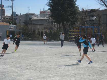 2月10日、本校の学校関係者評価委員長であり昭和薬科大学教授の吉永先生をはじめ、世田谷区そとあそびプロジェクト・外遊び推進員や大学生などをお招きして、5年生対象に外遊び講習会を行いました。外遊びをすることで気分が変わることを実感し、6年生になってから下級生をリードすることができるようになることを目的に取り組みました。子供たちは、校庭では「しっぽとり」「いろんな鬼ごっこ」、体育館では「鬼ごっこ」「段ボールを使ったキャタピラづくり」を楽しみました。終了時に「外遊びリーダー認定証」を一人一人いただきました。本日の授業で身に付けたことを、たてわり班のリーダーとして活用できることを期待しています。