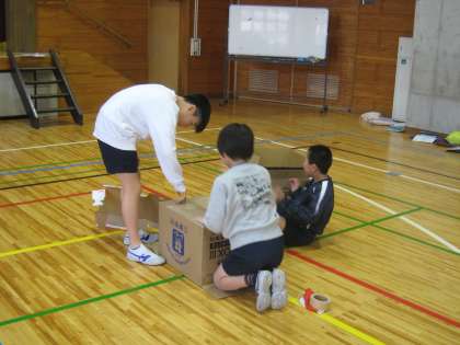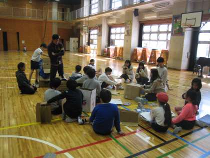 2月10日、本校の学校関係者評価委員長であり昭和薬科大学教授の吉永先生をはじめ、世田谷区そとあそびプロジェクト・外遊び推進員や大学生などをお招きして、5年生対象に外遊び講習会を行いました。外遊びをすることで気分が変わることを実感し、6年生になってから下級生をリードすることができるようになることを目的に取り組みました。子供たちは、校庭では「しっぽとり」「いろんな鬼ごっこ」、体育館では「鬼ごっこ」「段ボールを使ったキャタピラづくり」を楽しみました。終了時に「外遊びリーダー認定証」を一人一人いただきました。本日の授業で身に付けたことを、たてわり班のリーダーとして活用できることを期待しています。