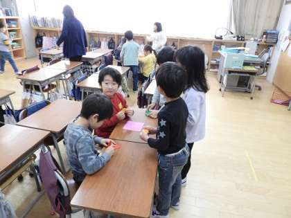 2月12日、世田谷幼稚園の園児が小学校を訪問して1年生と幼保小交流を行いました。教室、図書室、体育館に分かれ、園児に楽しんでもらおうと考えた内容を披露していました。普段は6年生にお世話になっている1年生が園児を親切にもてなしていました。2/13太子堂保育園、2/19遊愛保育園とも交流する予定です。