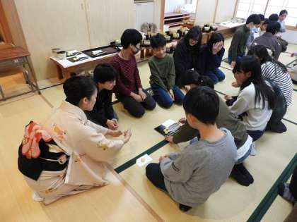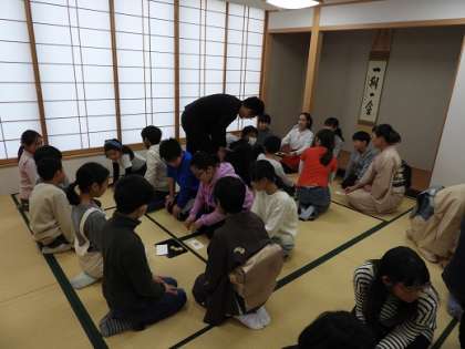 2月12日、茶道の先生方をお招きし、6年生が茶道教室を行いました。4年生から年に1回体験してきた茶道教室も今回が最後となります。お菓子をいただき、抹茶をたて、日本の古き良き伝統を味わいました。