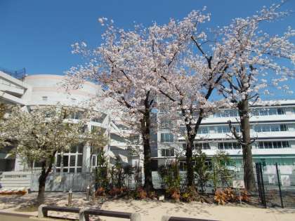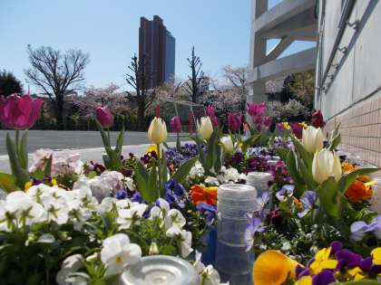 学校はたくさんの花に囲まれて、とてもきれいです。