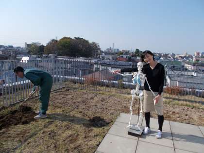 4階の奥には理科室があります。理科室の外は畑になっています。今年はここで、あるものを育てようと思っていますが、それはまたのお楽しみです。(右の写真)