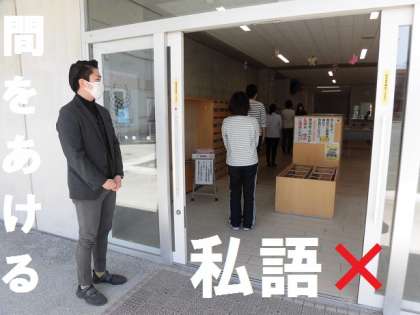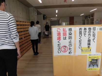 並んでいる間は、校庭でも昇降口でもお話はできません。
