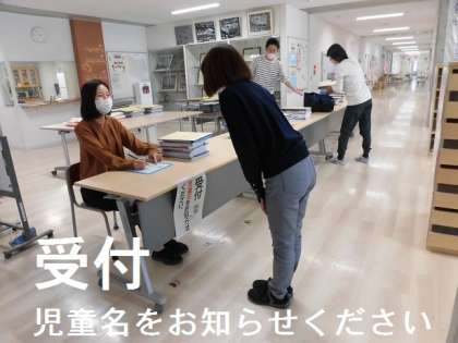 受付では児童名をお知らせください。教員がチェックします。