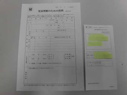 1年生は「就学通知書」と「児童理解のための資料てを必ずお持ちください。受付で回収いたします。