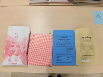 (左から)教科書、PTAセット、就学援助関係の書類、学校からの書類