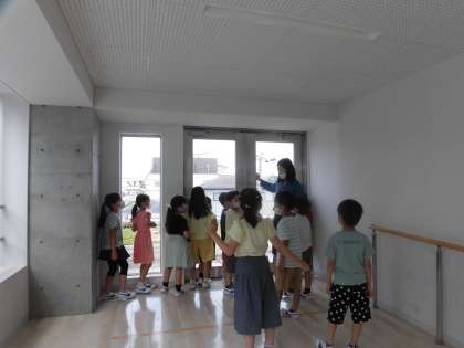 今週は、学校探検をしました。「ここは、なんの部屋だろう?」「6年生の机ってこんなに大きいの!」初めて見るものにみんな興味津々で、校内をめぐりました。おしゃべりしない、友達や他のクラスのものに触らないというルールをしっかり守って、すれ違う先生たちにたくさんほめられました。