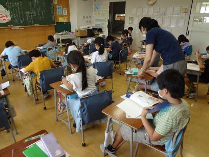 国語「スイミー」の学習では、スイミーにあてて手紙を書きました。今まで場面ごとに勉強してきて分かったことやスイミーを読んだ感想などをみんな一生懸命に書いていました。