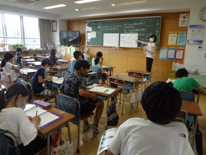 5年生は、小数のわり算の仕方を学んでいます。今日は、「整数÷純小数の意味と計算の仕方について理解する」授業でした。どのクラスも真剣に課題に取り組んでいました。