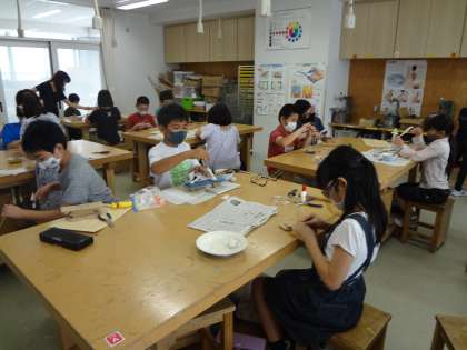 5年生の図工「未来人のダンス」では、安全に気を付けながらワイヤーで動きをつくり、その上に和紙を貼り重ねていました。どんな作品が出来上がるか楽しみです。