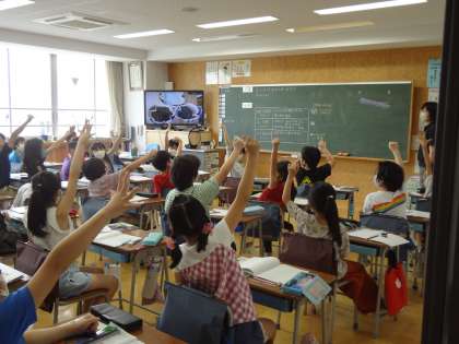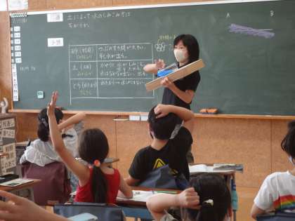 4年理科「雨水の流れ」では、水が高い所から低い所へ流れて集まっていくことについて学習をしていました。