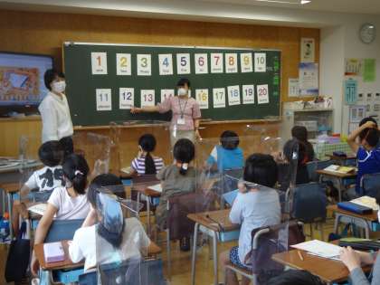 3年の外国語活動では、How many ?に対して、10より大きい数を英語で答える学習をしました。意欲的に答えていました。