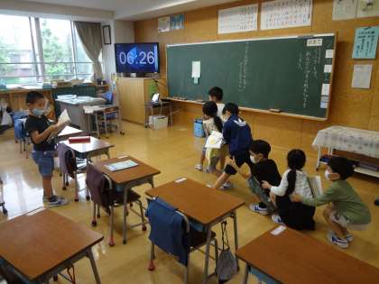1年国語「おおきなかぶ」では、音読劇の練習をしていました。グループで協力して動作も付けていました。「うんとこしょ。どっこいしょ。」