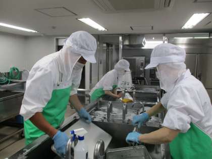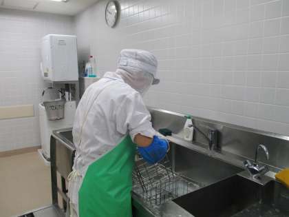給食は、7月30日に終了しました。今は、2学期に向けての給食室のメンテナンスをしています。2学期も安心安全でおいしい給食を作ります。