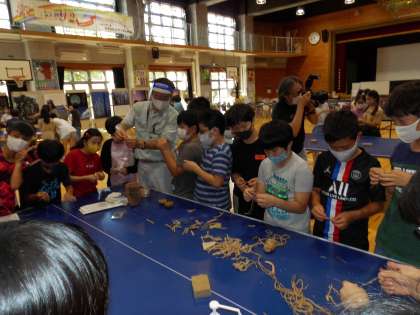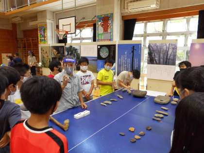 9月8日3・4校時、体育館で6年「郷土歴史文化特別授業」が行われました。これは、世田谷区教育委員会事務局生涯学習・地域学校連携課による出前授業です。縄文土器や釜土、石器などの実物を体育館に展示し、土器を抱えたり、縄で粘土に模様をつけたりといった貴重な体験活動をさせていただきました。子どもたちは、いにしへに思いをはせながら、すすんで活動していました。