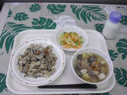 6月9日(木)のメニュー『ひじきごはん・三平汁・ひとしおやさい・牛乳』