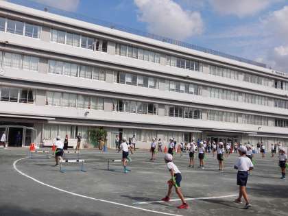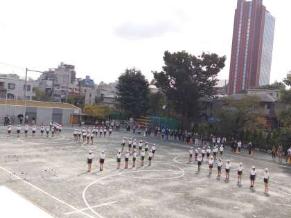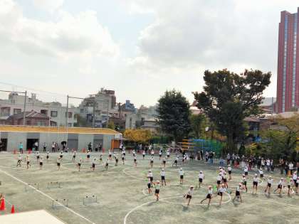 「スカイハイ」に合わせて、軽快にハードルを飛び越えました。「ライブラリーウォーズ」「ウォーターボーイズ」「ひろがれせたがや」に合わせての表現。特に、風車は、とてもそろって移動ができました。「フィールズライクトゥナイト」で颯爽と退場しました。