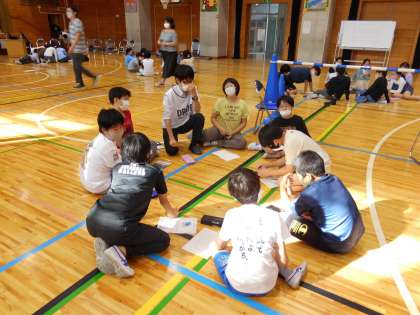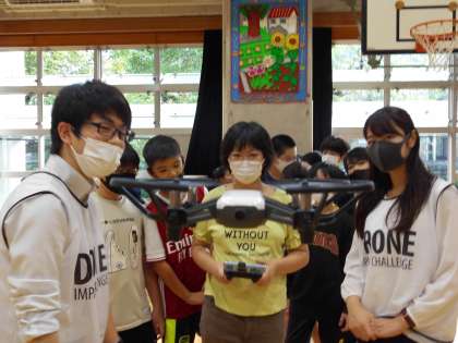 6年生は、経済産業省委託事業「ドローンプログラミング授業」をFPV ROBOTICS INK.の皆様のご指導のもと、実施しています。はじめに、ドローンの仕組や歴史、産業での活用について映像を交えてお話しいただきました。その後、未来のドローンについてグループでアイデアを出し合いました。「消火ドローン」「医療ドローン」「ベットドローン」等、自分たちの考えたドローンを紹介し合いました。そして、いよいよ小型ドローンの操縦体験。最後は、チーム対抗レースで盛り上がりました。