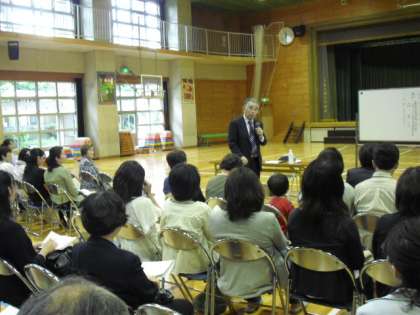 全学級の道徳授業公開の後 お箏&西山囃子の発表会がありました。(写真上・中)公開講座の最後は 【学校心理士 森 薫 先生】による「新しい時代の家族力」というテーマでの講演がありました。(写真下)
