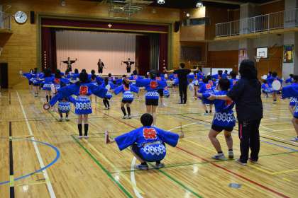 6年生は、11月28日(土)の「校内陸上記録会」に向けて「エイサー」の練習をしています。今日は、講師を招いて「エイサー出前授業」を実施しました。はじめに、ゲストティーチャー3人が、2曲、踊りを披露してくれました。1曲は、大ぶりの太鼓を使った踊りでした。もう1曲は、「笑顔のまんま」、子どもたちが踊る曲でした。模範演技の後、子どもたちは、ゲストティーチャーの前で踊りを披露しました。そして、ゲストティーチャーにうまく見えるコツを教えていただきました。校内陸上記録会で、上達した姿を6年生の保護者の皆様にお見せできるよう練習に励みます。