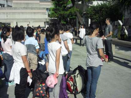 川場移動教室(群馬県川場村)に出発しました。<写真上 出発式>