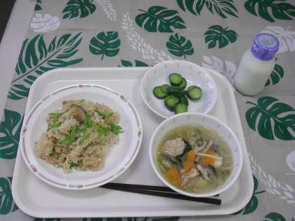 6月30日(木)のメニュー『中華おこわ・肉団子炒り春雨スープ・華風きゅうり・牛乳』