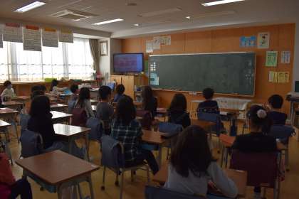 始業式に続き、生活指導主任が冬休みの生活についての話を校内ライブ配信しました。1道路への飛び出しをしない。(横断歩道を渡る。左右の安全確認をする。)2自転車に乗る時にはヘルメットを被る。3ローラースケート、キックボード、スケートボードなどは道路や歩道では乗らない。交通事故にあわないために気を付けることについて指導しました。最後に、「冬休みの過ごし方についておうちの方とよく話をして、安全に楽しく過ごしましょう。」と伝えました。「楽しい冬休み」のプリントを配布しました。ぜひお子様と一緒に読んで話し合い、安全で楽しい冬休みにしてください。