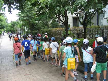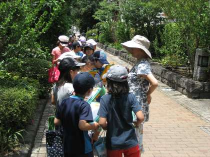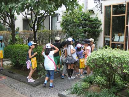 烏山川緑道を調べに出かけました。デジカメを持って、自分が調べているテーマの写真を撮ったり、緑道を利用している人にインタビューしたりしました。グループで協力して、活動することができました。