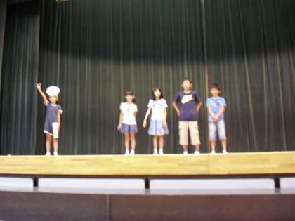 「エコののために 自分たちには何ができるのか みんなに何をしてもらえるのか」を考えながら劇にして発表しました。委員会活動の時間だけではなく休み時間などにも集まり台本からすべて代表委員が考えました。