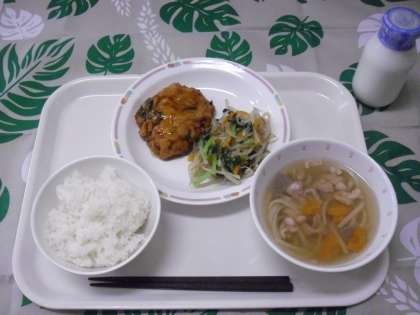 今日はそのお豆腐の中に鶏のひき肉やえび、野菜を入れ油で揚げ、和風のソースをかけています。(保険美化給食委員会 昼の放送発表より)