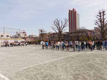 晴天に恵まれ桜の花もちらほらと咲く中、見学の下級生や保護者の方々に見守られて素晴らしい式となりました。