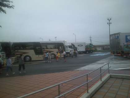 どんよりしていますが蒸し暑さはありません。どの車もみんな元気でバスレクで楽しんでいます(^-^)