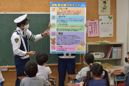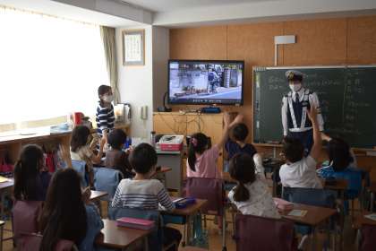 3年生は、世田谷警察から2人の警察官にお迎えして、各学級で交通安全教室を実施しました。テーマは、「安全な自転車の乗り方」です。自転車に乗るときに気を付けることや自転車の点検のポイントを教えていただきました。その後、2人の子どもが危険な自転車の乗り方をしている映像を見て、どこがよくないのかについて皆で考え、安全な乗り方について確認しました。ご家庭でもぜひ話題にしてください。明日から連休に入りますが、交通事故に気を付けて過ごしてほしいです。ご指導をよろしくお願いいたします。