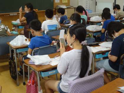 6月4日から10日は、「歯と口の健康週間」です。太子堂小学校では、毎年、4年生が、歯科校医の先生をお迎えして「全国小学生歯みがき大会」を実施しています。DVDを見ながら、「大会ドリル」にクイズの答えを書いたり、自分の歯ぐきの様子を鏡で観察したり、歯ブラシの動かし方を確認したりしました。歯みがきを含めたよい生活習慣を未来の自分のために毎日続けることの大切さについて学びました。ぜひ日々実践してほしいです。