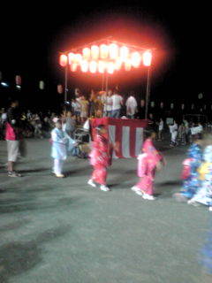 ゆかたを着て盆踊りを踊る子供たち。 焼きそば・フランクフルト・ポップコーン・スーパーボール、ヨーヨー釣り…おいしく楽しく過ごして、子供たちには笑顔がいっぱいです
